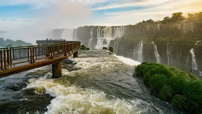 Las Cataratas de Iguazú, declaradas como una de las Nuevas Siete Maravillas Naturales del Mundo, se encuentran a 23 kilómetros de la desembocadura del río homónimo y cuentan con más de 270 saltos de agua que alcanzan los 80 metros de altura.