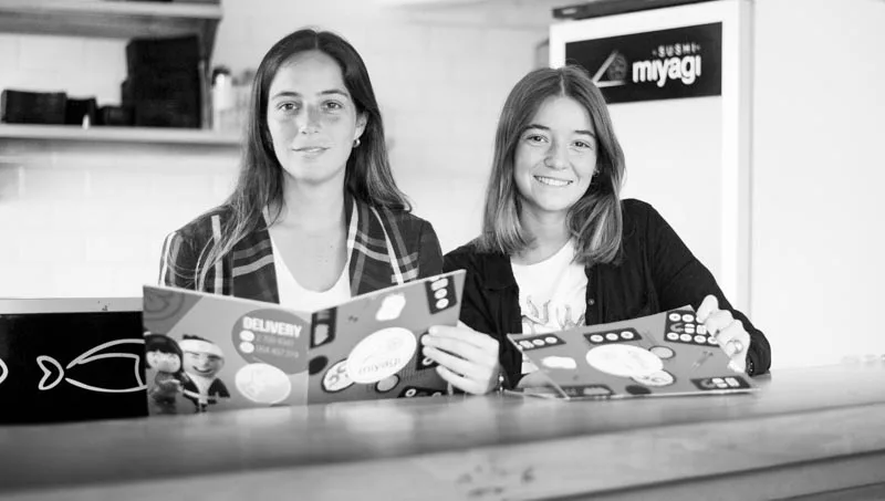Yamila y Lucía Peon son miembros de la familia propietaria de Miyagi sushi. Esta aventura comenzó hace 2 años y medio cuando su padre y María (mamá de Lucía) compraron el local de Miyagi sushi, ubicado en Gabriel Pereira y 26 de marzo -Pocitos-. Lucía, amante del sushi desde hace años, disfrutó siempre preparar en su casa distintas variedades para invitar tanto amigos como a sus primos y familiares. Yamila -estudiante a punto de finalizar la carrera de contador público- comenzó a relacionarse directamente con el ámbito gastronómico, cuando surgió la posibilidad de adquirir un nuevo local en Carrasco, que sería administrado únicamente por ella y su hermana.