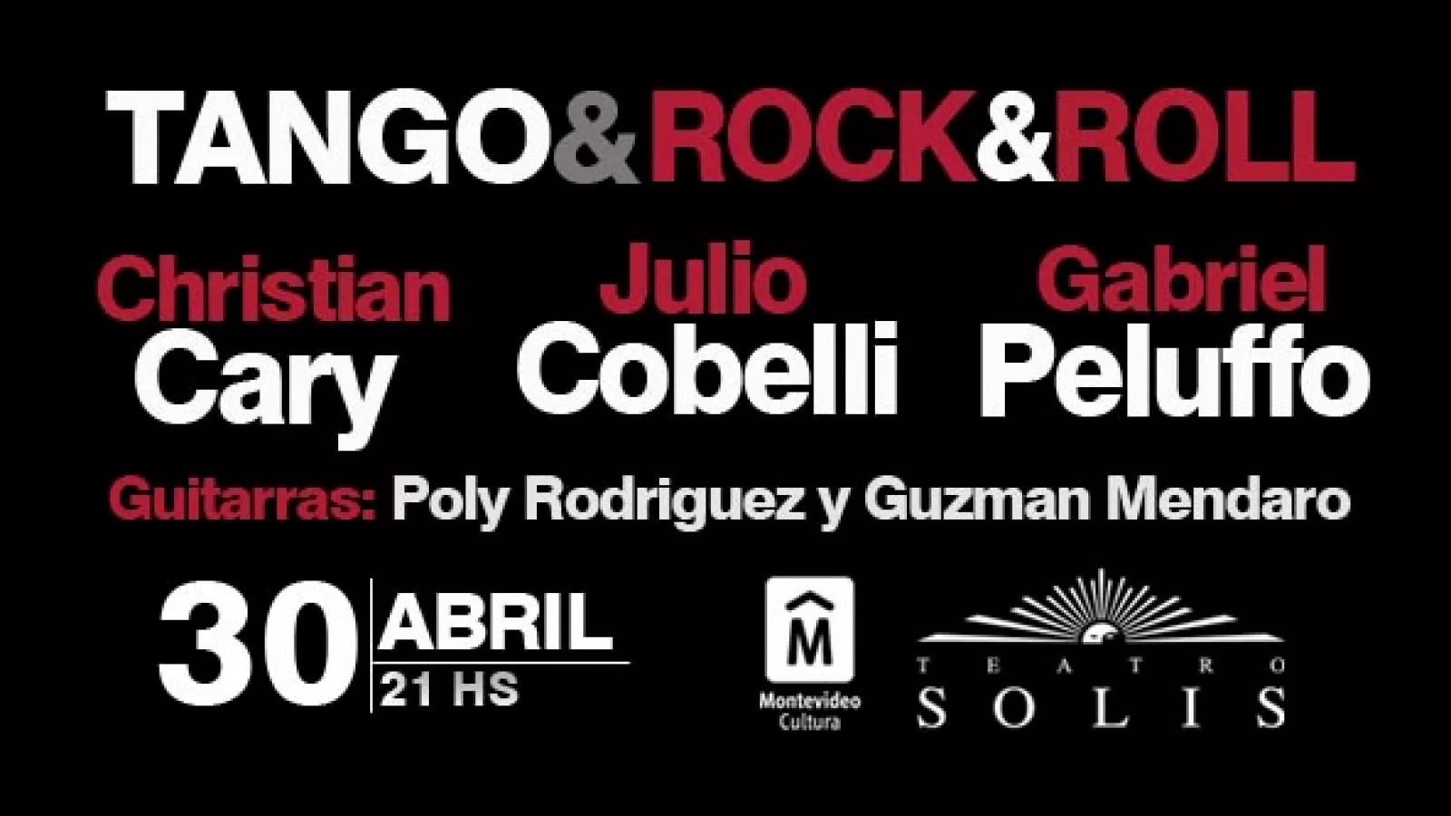 Julio Cobelli, Gabriel Peluffo y Christian Cary presentarán un espectáculo que recorre la historia del tango y la milonga, interpretando obras nacionales e internacionales, contando además con las guitarras de Guzmán Mendaro y Poly Rodríguez. Será el domingo 30 de abril a las 21.00hs en la sala principal del Teatro Solís. Las entradas están a la venta a partir de $400 por Tickantel.