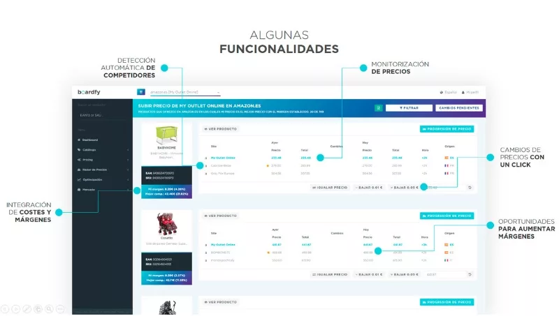 (Por Santiago Magni) La plataforma de origen español se basa en la inteligencia de precios que permite aumentar las ventas además de monitorizar los precios de los competidores. Se prevé que la plataforma llegue desde nuestro país a Chile, Argentina, Colombia, Perú y Paraguay.