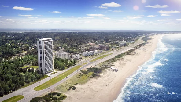 “La síntesis perfecta de distinción y confort” es la consigna que caracteriza a Le Parc. Con acceso sobre la Rambla, el nuevo desarrollo estará emplazado en la parada 9 y ½ de Playa Brava, una ubicación estratégica que ofrece cercanía al centro, sobre un terreno de 7.000 m2. La torre contará con 24 pisos de residencias para la venta, con un frente de 70 metros hacia el mar.