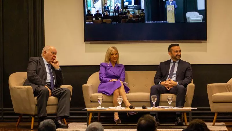 Bajo un formato híbrido y simultáneo, la Cámara Española de Comercio en Montevideo y Casa de América en Madrid fueron las sedes donde destacadas personalidades como la Vicepresidenta de la República, Beatriz Argimón, y el Secretario de Estado para Iberoamérica y el Caribe y el Español en el Mundo, Juan Fernández Trigo; se hicieron presentes para aportar su visión sobre este tema tan relevante como estratégico para la Unión Europea y el Mercosur.