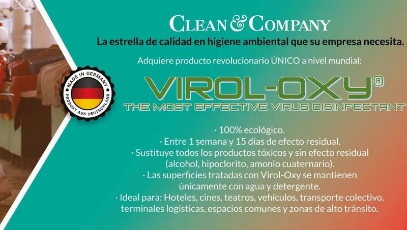 Clean & Company brinda un servicio integral, no solo vendiendo el producto sino que acude a los lugares que se solicita desinfección o trabajos de limpieza de todo tipo y mantiene según Lanza, precios accesibles ya que las cotizaciones son en función del tamaño del lugar. “Esto es fundamental para los teatros, cines, colegios, restaurantes, terminales logísticas indicó el especialista”. Es necesario resaltar que entre las distintas aplicaciones, la acción residual de Virol-Oxy en las áreas intervenidas no requieren mantenimiento alguno, ya que sustituye: Alcohol, hipoclorito, amonio cuaternario, cloro y otros productos que además de ser tóxicos, no tienen acción residual.