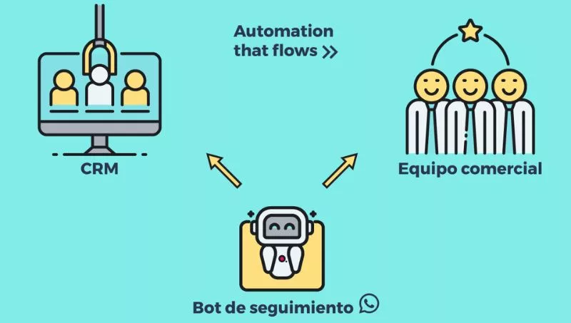 Según Rodríguez -uno de los directores de Osom-, en este segundo sentido, el bot envía notificaciones por WhatsApp a cada comercial consultando por el estado de los leads que aún no ha cerrado, “porque lo más frecuente es que un comercial envíe un presupuesto y si esa venta no se concreta inmediatamente, esas cotizaciones van quedando relegadas e incluso olvidadas”.
