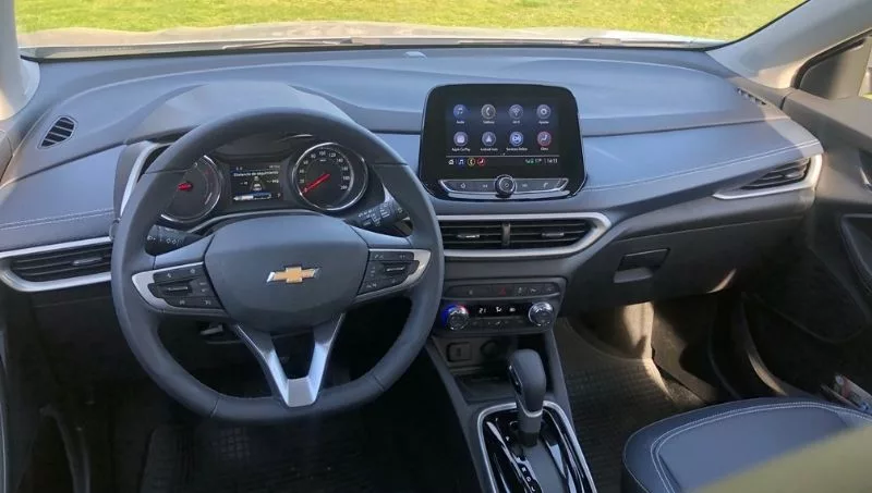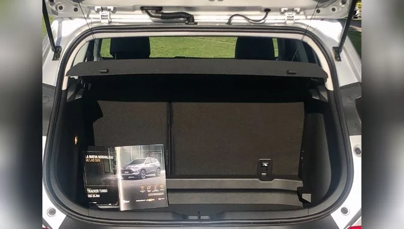 No faltan las varias identificaciones lumínicas habituales dentro de las esferas. Tampoco falta en los tiempos que vivimos la pantalla touch que en este caso es volada y de 8 pulgadas con pequeña inclinación que deriva hacia el conductor y hacia arriba; de esa forma la transforma en una utilización algo más intuitiva y sin tanta necesidad de distraer la mirada; más allá de que prácticamente todo se maneja desde el volante, siguiendo con la multimedia, la misma contiene AM, FM, Bluetooth, ciertas configuraciones del vehículo, ajustes relacionados al funcionamiento del audio y Android Auto, como así también Apple CarPlay; de esta forma los ocupantes al enchufar en el USB el equipo, logrará replicarlo, pudiendo usar aplicaciones como Spotify, Waze, etc. Allí mismo se visualizará la cámara de reversa para facilitar el estacionamiento, que a su vez, tiene sensores sonoros tanto posteriores, como delanteros. A su vez la nueva Tracker incluye como estándar 6 air bag, frenos ABS, EBD; suma también control de tracción (ESC) y de tracción (TCS) y asistencia de arranque en pendiente, siguiendo con la seguridad, sistema de anclaje para sillas de menores con zona programada de deformación Isofix y detector de punto ciego, que como en el Onix, se incorpora en la carcasa de los espejos, dando mayor visibilidad del mismo. Los dos parasoles, cuentan con luz,