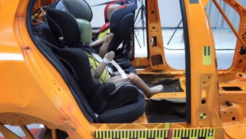 Estos ensayos se llevan a cabo con Crash test Dummy. Un muñeco o maniquí antropomórfico réplicas a tamaño y peso real de una persona, como así sus articulaciones pudiendo de esa manera replicar el comportamiento der ser humano en las distintas colisiones que se crean en estos estudios. Los Dummys contienen numerosos instrumentos para recolectar toda la información posible sobre variables; torsión del cuerpo, fuerza de compresión, velocidad y desaceleración en el impacto.