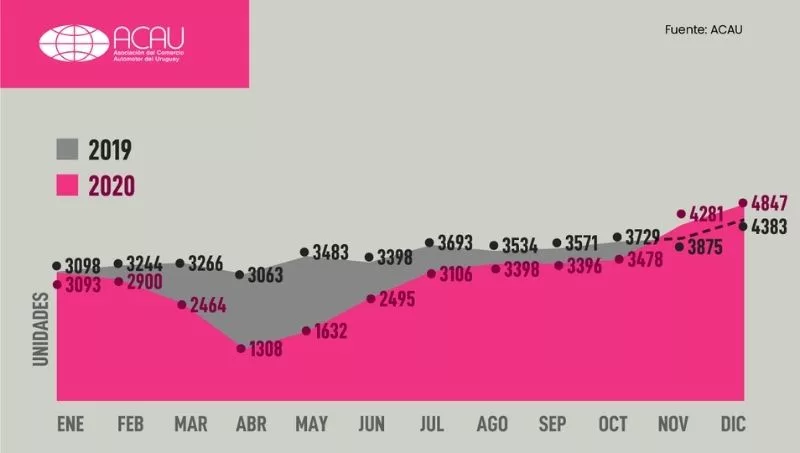 Como se ve en las cifras debajo del texto, el punto más bajo, fue en el mes de abril, donde la caída fue dramática llegando a una tercera parte promedio de las ventas habituales, centradas en unas 1.300 unidades.