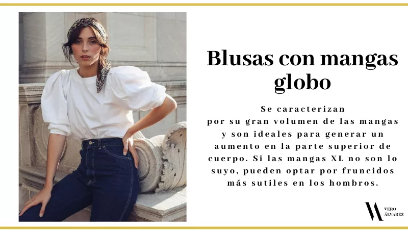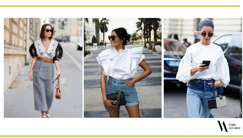 - Blusas con mangas abullonadas o globo: llegaron para quedarse a largo plazo, son las protagonistas del año. Se caracterizan por su gran volumen de las mangas y son ideales para generar un aumento en la parte superior del cuerpo. Se pueden usar con todo, en un look más de oficina con pantalón sastrero y stilettos, un look más casual con jeans y championes y un look para noche con falda y sandalias. Si las mangas XL no son lo suyo, pueden optar por fruncidos más sutiles en los hombros.