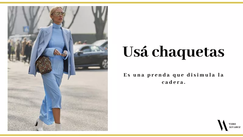 -Para disimular la cadera, usen una chaqueta o blazer. Puede ser el mismo color de las prendas o una que contraste.