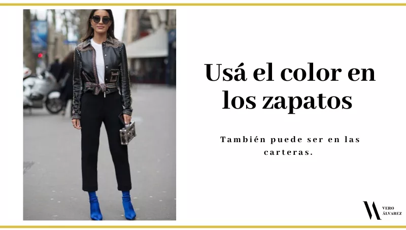 -Si no se hallan con el color en las prendas, pueden usarlos en los zapatos o accesorios. Es ideal para hacer punto focal y evitar foco en esa zona que se quiere disimular.