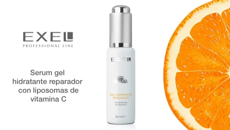 El gel hidratante reparador con liposomas de vitamina C Exel, de gran acción antioxidante y foto protectora, hidrata, repara y suaviza.
