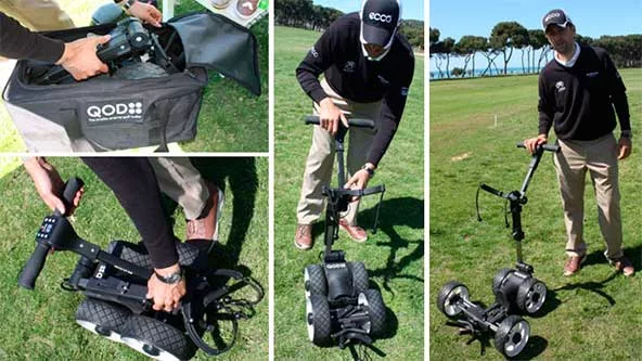 QOD, el carrito eléctrico más pequeño del mundo de fácil y rápido montaje, estable y fácil de maniobrar. Con unas medidas sorprendentes (27cm x 30cm x 42cm) y un peso de 11 kg., se puede guardar en el maletero del coche. Fabricado con materiales ligeros de primerísima calidad, combina el acero inoxidable, Nylon 66 y elementos de la industria aeronáutica.