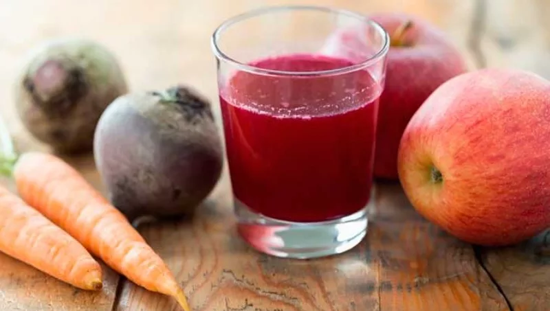 Para prepararlo sólo se debe mezclar en la licuadora 1 taza de agua, 1 remolacha mediana, 1 zanahoria mediana, 1 manzana mediana y cuatro cubos de hielo.