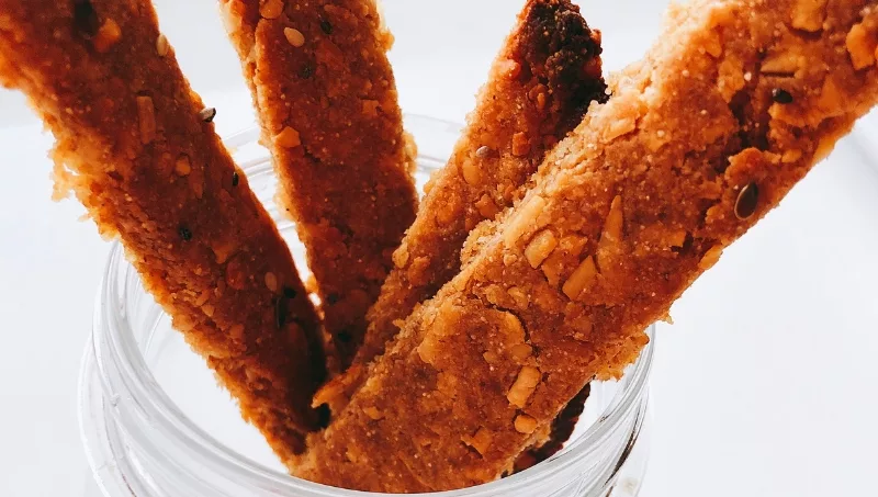 - Colocamos la masa en una asadera previamente aceitada y con un cortante para pizza o un cuchillo marcamos las tiras para luego poder separarlos fácilmente.