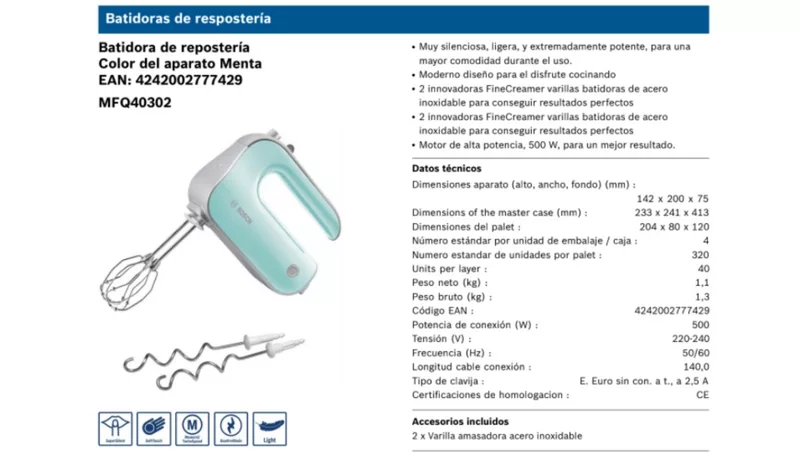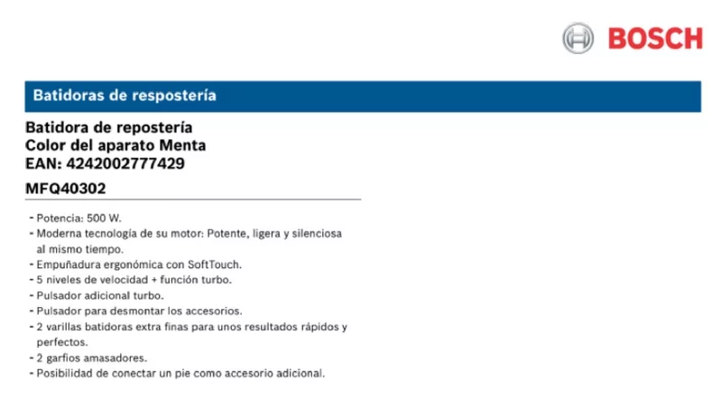 El diseño es muy moderno y estamos seguros que no desentonaría en tu cocina. Además, tu nuevo ayudante en la cocina llega con dos tipos de accesorios: dos varillas de acero inoxidable batidoras y dos varillas de acero inoxidable amasadoras. Este producto llega a Uruguay de la mano de Diaril, distribuidor oficial Bosch.