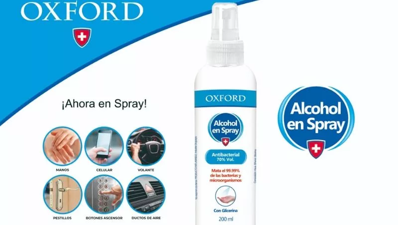 Protegete con Oxford Alcohol Antibacterial en spray.