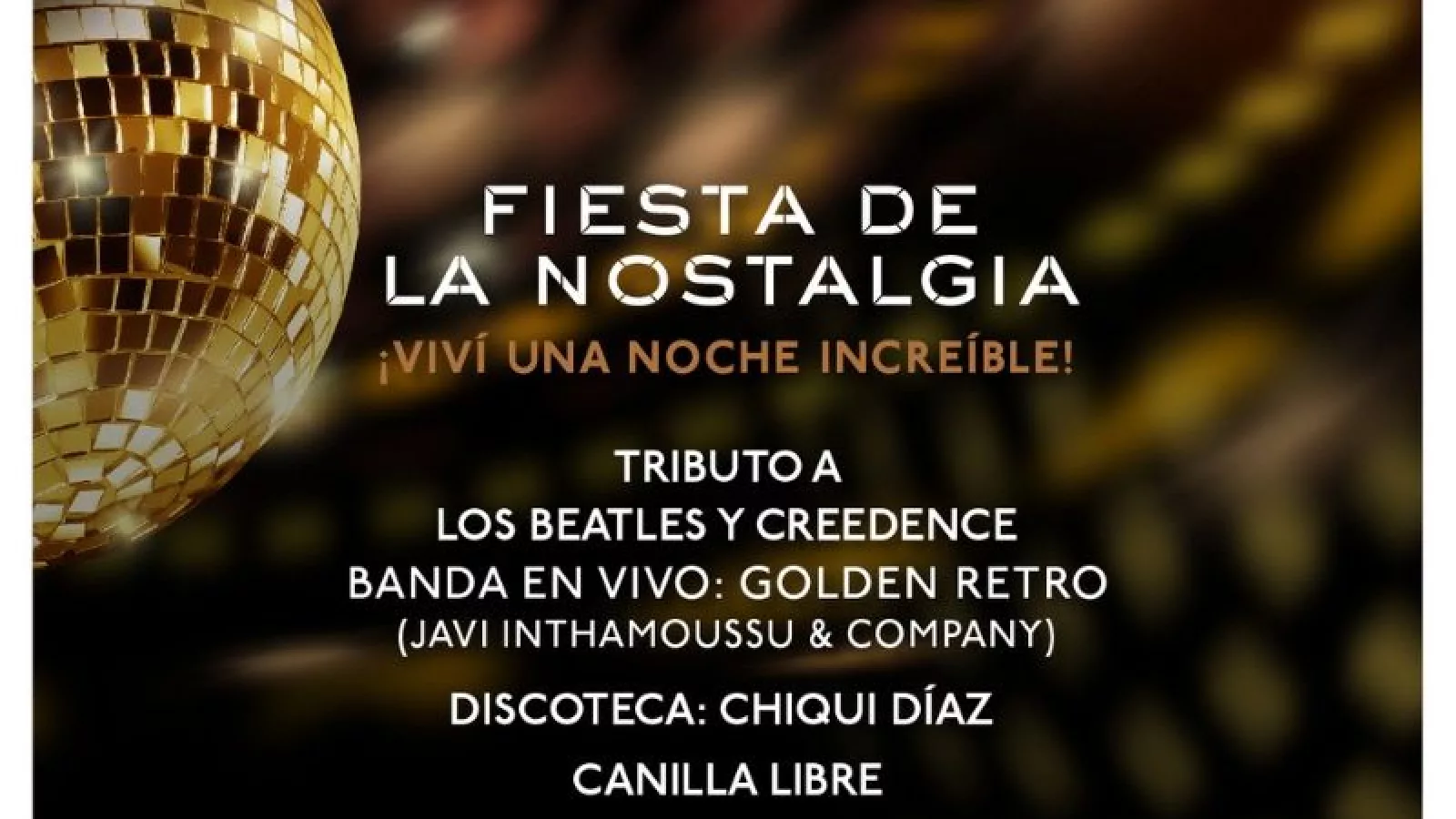 Este 24 de Agosto gran tributo a Los Beatles y Creedence en la chacra La Baguala. Discoteca con Chiqui Díaz y Canilla libre toda la noche de bebidas alcohólicas, whisky, cerveza, vino y refrescos.