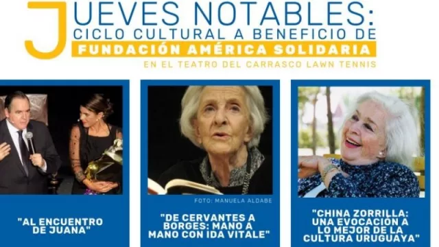 Un ciclo de tres Jueves Notables;15,22 y 29 se llevará a cabo con la implementación de tres espectáculos que estarán bajo la producción y dirección artística del escritor Diego Fischer y con el objetivo de recaudar fondos para los proyectos que buscan disminuir la pobreza infantil, impulsados por América Solidaria en Flor de Maroñas (Montevideo), Las Piedras (Canelones), localidades rurales de Blanquillo y La Paloma (Durazno), Quebracho y Paso de los Carros (Paysandú) y Paso de los Mellizos (Río Negro).