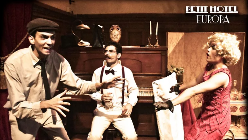 El emblemático hall, con una gran escalera de madera, de El Telón Rojo se transforma durante 150 minutos en un hotel del Reino de Kichik Bir, un país europeo que en alguna dimensión desconocida supo existir. Corre el año 1927 y Polina, que es propietaria del Petit Hotel Europa, se encuentra en dificultades económicas para mantenerlo. Cada vez hay menos huéspedes, pero esta noche comienza a llegar un conjunto muy variado y variopinto de visitantes. El hotel está repleto y los enredos y confusiones se despliegan cuando las piezas de esta comedia en dos actos comienzan a encajar.