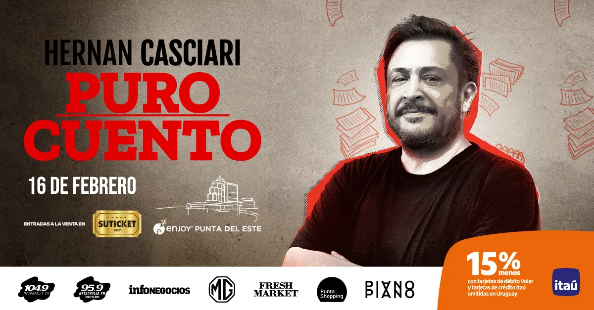 Finalmente, el 16 de febrero, Hernán Casciari se presentará con Puro Cuento, un recital literario en el que cada función es distinta. En un formato cercano, el autor comparte relatos que cruzan humor, emoción y reflexión, y que proponen una experiencia diferente dentro de la agenda de espectáculos del verano.
