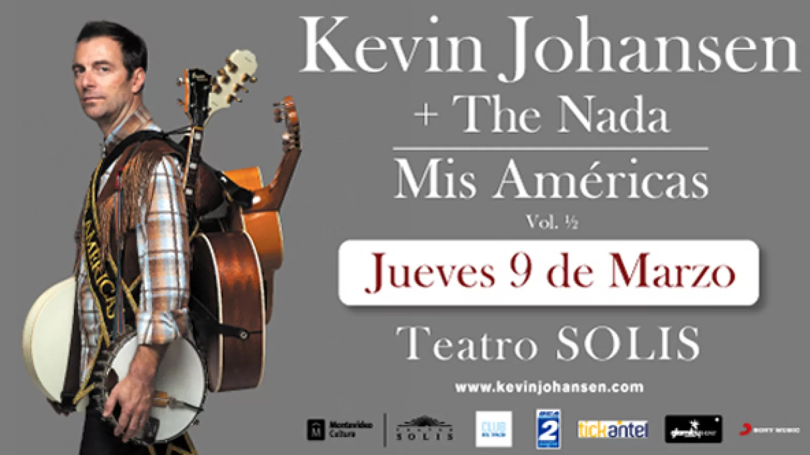 El jueves 9 de marzo, el Teatro Solís recibirá a Kevin Johansen + The Nada, quienes presentarán su nuevo disco "Mis Américas, Vol. 1/2", grabado entre Nueva York, Río de Janeiro y Buenos Aires, con invitados de lujo y nominado a 3 Grammys Latinos. Las entradas ya están a la venta por Tickantel y los precios van desde los $700 la entrada más barata, hasta $1600.