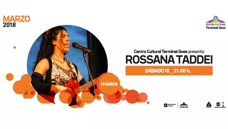 El próximo sábado 10 de marzo, a las 21 horas, Rossana Taddei brindará un concierto acompañada por el percusionista y baterista, Gustavo Etchenique y el bajista Alejandro Moya. Será en el Centro Cultural Goes y las entradas ya están a la venta por Tickantel a partir de $250.