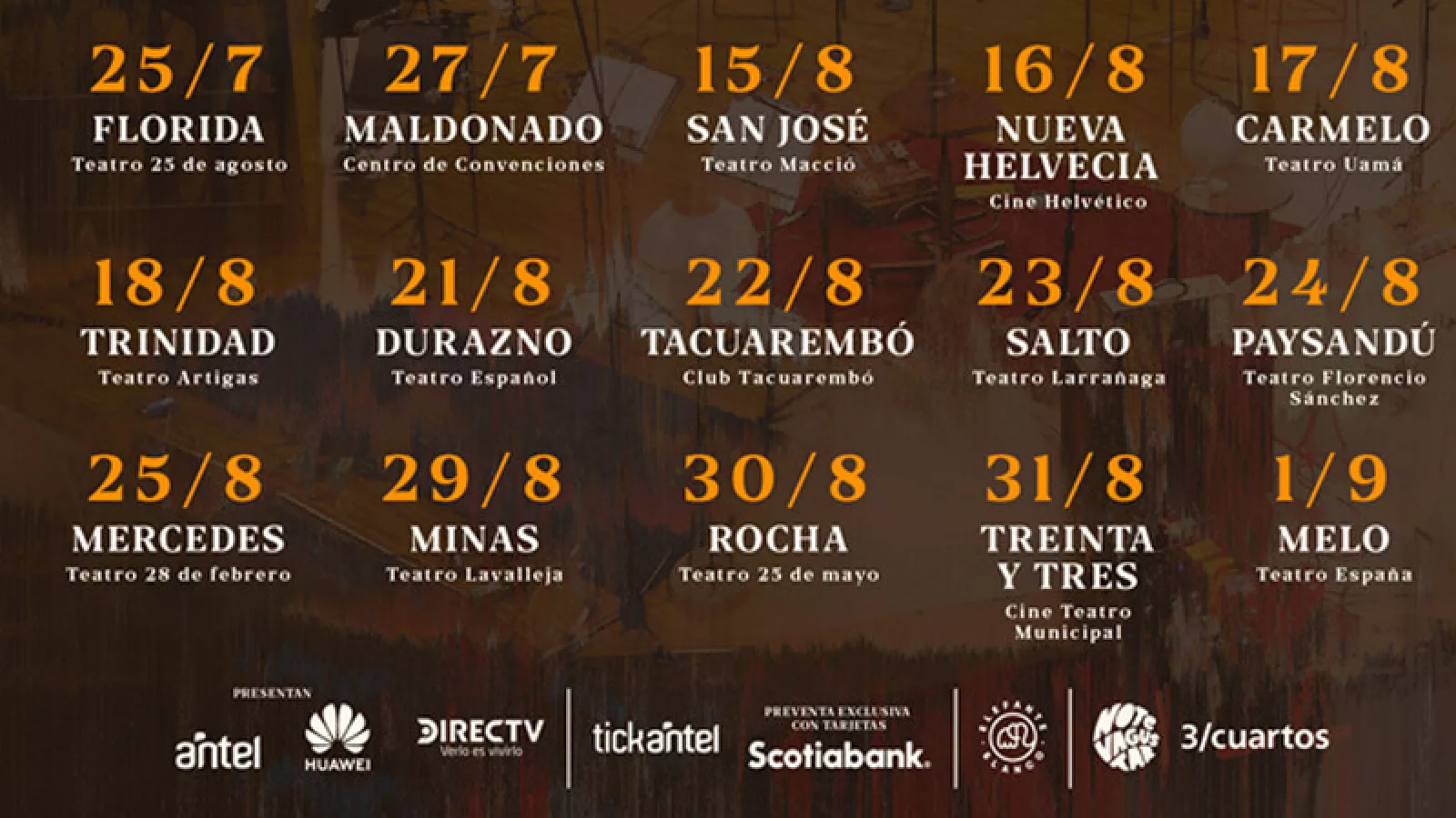 El espectáculo está basado en la pieza audiovisual “Otras Canciones” en la cual NTVG revisó una buena parte de su carrera. Sus canciones clásicas y aquellos temas que no suenan en los shows multitudinarios, pero que son piezas fundamentales de sus discos, reinterpretados de manera íntima y tomando como base una instrumentación acústica. La gira comenzará el 25 de julio en Florida y terminará el 1° de setiembre en la ciudad de Melo.
