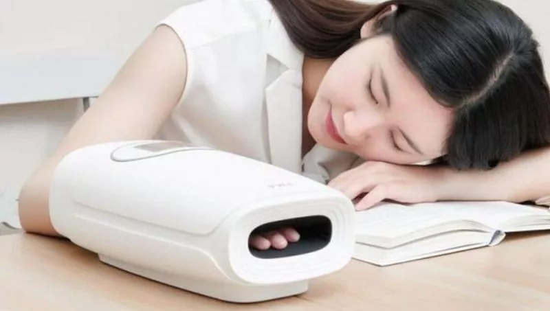El aparato mide 310 milímetros de largo, 158 de ancho y 112 de grosor. Parece un manguito en el que introducimos la mano para dejarla reposar sobre la mesa mientras relajamos el resto del cuerpo durmiendo o viendo la televisión, por ejemplo.