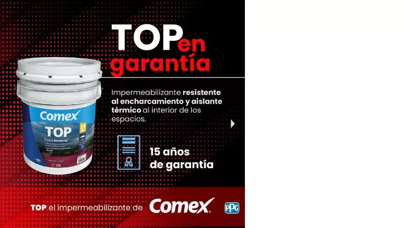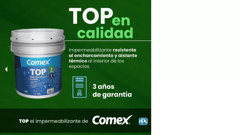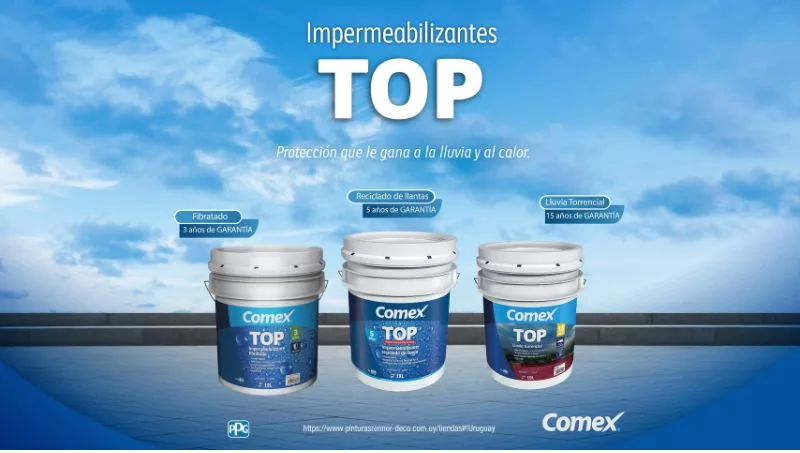 La categoría la complementan: Top Fibratado Secado Rápido y 3 años de garantía. Top Lluvia Torrencial un impermeabilizante con secado rápido, aislante térmico y resistencia al encharcamiento.