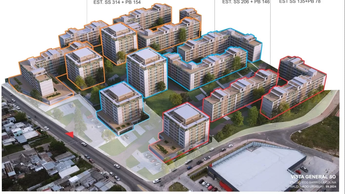El desarrollo La Colina comenzó a planificarse en 2018 y contempla una superficie total de 16 hectáreas. Ocho de ellas se destinarán a una plaza pública y otras ocho al desarrollo edilicio. El proyecto prevé la construcción de 14 torres de apartamentos (más de 1.000 unidades en total), áreas comerciales (10.000 m²), depósitos en subsuelo (15.000 m²) y cocheras (1.111 m²), con una superficie total construida de 84.000 m² para viviendas.
