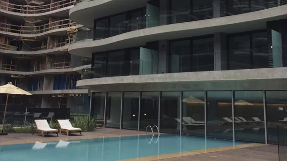 La empresa de asesoramiento y ventas de piscinas y accesorios para piscinas, Akesse, fue la elegida por Forum. En planta baja realizaron 3 piscinas, una “In-Out” de 30 x 5 metros con desborde finlandés, una exterior para niños de 14x14 y una de nado contra corriente de 9 x 3 metros, las tres climatizadas. Además de las piscinas de uso social, Akesse también se encargó de los 14 spa hidromasajes, las duchas solares, dos saunas secos y de las cinco piscinas que van en las terrazas superiores de algunos apartamentos.
