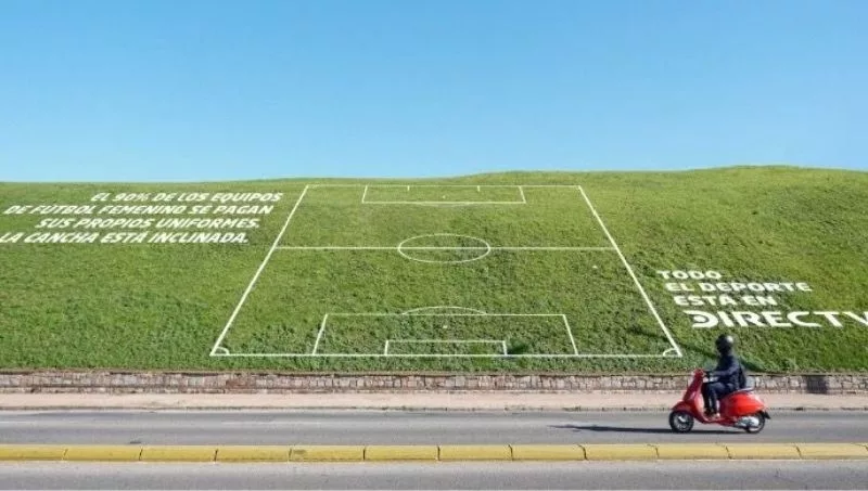La imagen fue más que elocuente: en las canteras del Parque Rodó, en la pendiente que tiene el lugar, la empresa dibujó una cancha de fútbol. La frase al costado de esa cancha lo decía todo: “El 90% de los equipos de fútbol femenino se paga sus propios uniformes. La cancha está inclinada”.