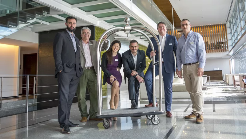(De izquierda a derecha): Andrés Fernández, gerente de Ventas; Raul Ruibal, director de Finanzas; Rossina Azambuya, Revenue Manager; Sebastian Orosa, gerente de Alimentos y Bebidas; Agustín Maddocks, gerente general; Luis Bonsignore, Gerente de Mantenimiento.
