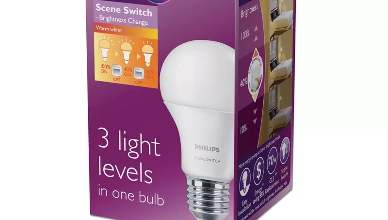 La bombita Philips SceneSwitch viene con tres ajustes de luz diferentes. Con solo apretar el interruptor de siempre y sin necesidad de un regulador se puede optimizar la iluminación para una actividad relajante, ocio o trabajo. Quizás uno de los atractivos más grandes de este nuevo producto es su practicidad, pues solo hay que poner la bombita en la lámpara, no se requiere instalación adicional. Pulsando la misma tecla y prendiéndola de nuevo va cambiando la intensidad de la luz como si fuera un dimmer.