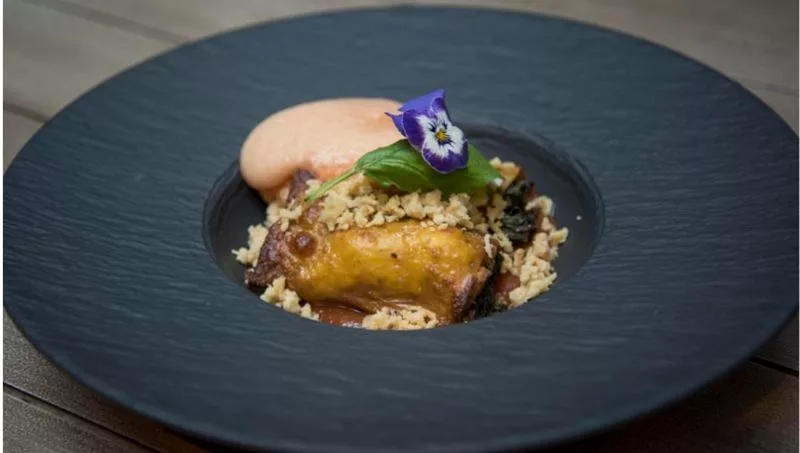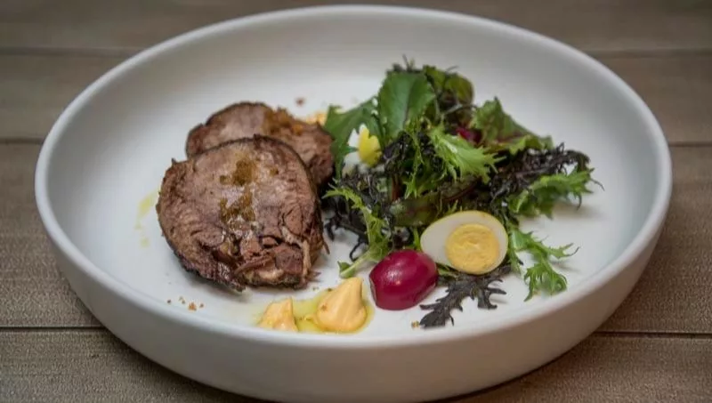 Para las entradas, se ofrece una gran diversidad de ensaladas frías, un cake tibio de trigo burgol y garbanzos, pulpo o una versión moderna de lengua a la vinagreta que también pueden ser el comienzo de esta experiencia sensorial. Desde el comienzo, se busca jugar con espumas e “innovar para que no sean platos aburridos, sino sabrosos con tal de que la persona que no es vegetariana o vegana se anime y pruebe” dijo el chef.