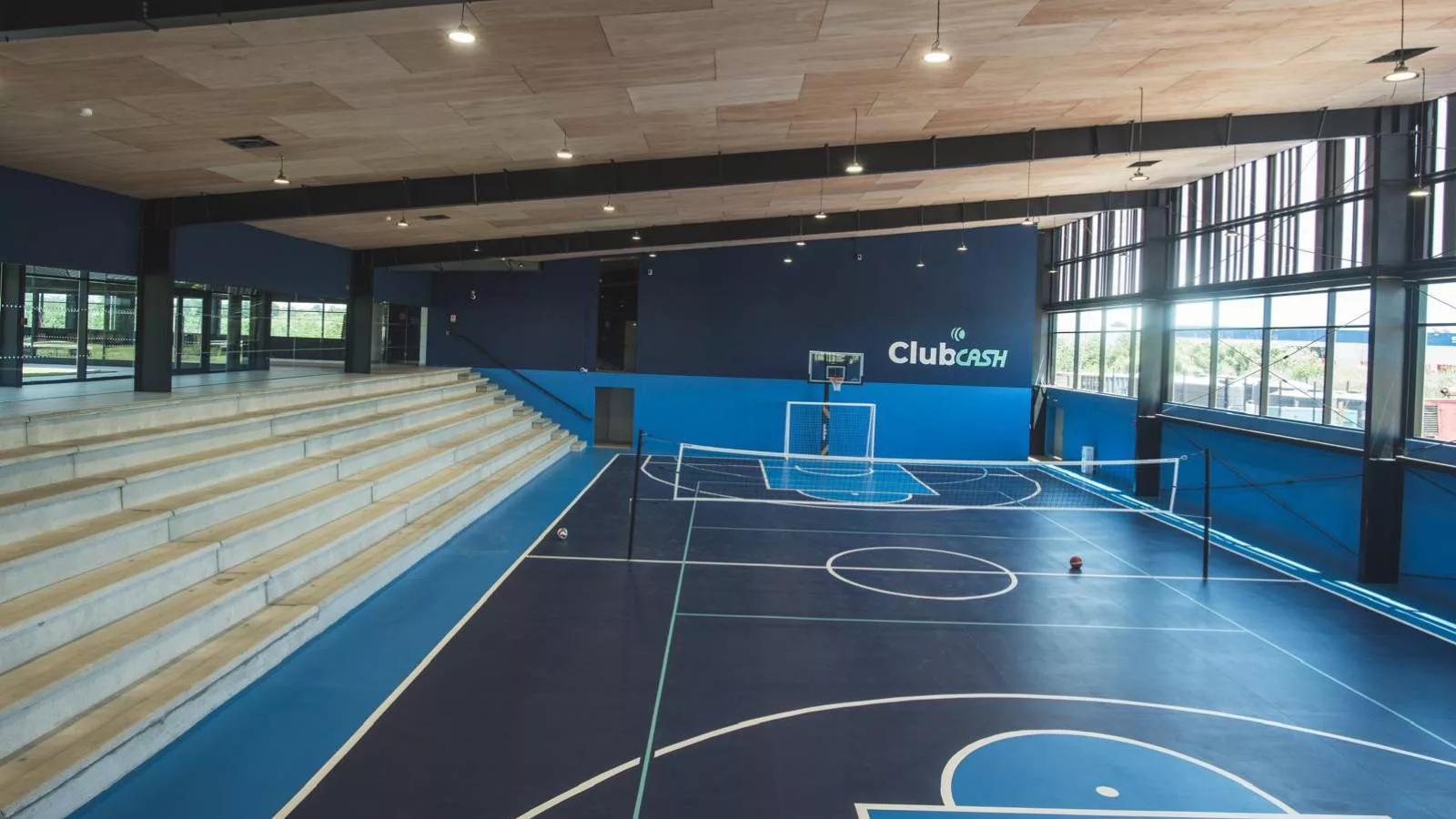 El Club Cash está dividido en dos áreas principales: una unidad social y una deportiva. La parte social incluye un salón de fiestas con capacidad para 400 personas, una cafetería, áreas de juegos y una zona de barbacoa, entre otros. El deportivo, de 5.000 metros cuadrados, cuenta con dos piscinas, canchas de fútbol, tenis, pádel, y varias salas de gimnasio, yoga y pilates.