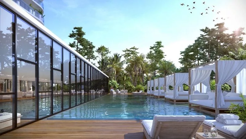 Otro punto en el que se destaca Surfside Village 1 es el fuerte compromiso con la sustentabilidad y el medio ambiente, “como por ejemplo su piel de vidrio para todo el edificio, que no tiene muros, todo es vista y los cristales de fachada son de lámina low-e, lo que baja enormemente el consumo energético en climatización, disminuyendo así el impacto medioambiental”, remarcó Etcheverrito.