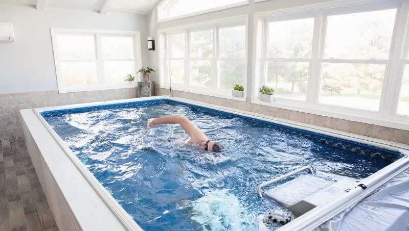 La piscina tiene corriente en contra, por lo que el nadador podrá entrenarse prácticamente sin moverse del lugar.
