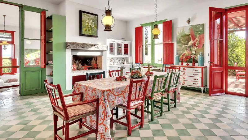 La casa tiene living comedor de gran tamaño, extremadamente luminoso, sala de estar, atelier de pintura (con techo de vidrio, como el de Monet, apunta Ezcurra) y escritorio. Cuenta con una cocina totalmente integrada, con comedor diario y salida al parrillero y galería.