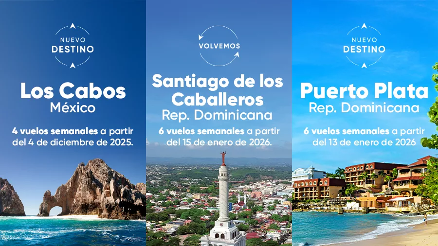 Santiago de los Caballeros (República Dominicana): ruta reactivada desde el 15 de enero, con vuelos los lunes, jueves y sábados.
