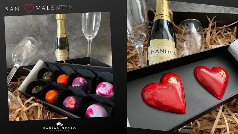 En esta pasión de crear y transformarse, Gesto diseñó este año una edición especial para San Valentín, concretamente “un estuche con dos corazones de chocolate relleno, que viene acompañado de una botella de Chandon y dos copas”, apuntó el emprendedor, destacando que se trata de un molde especial que consiguieron para el Día de los Enamorados.