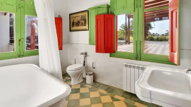 Su techo es de planchada con membrana, tiene dos calderas, baños con doble cañería con sistema americano, y grupo electrógeno. A su vez tiene casa de caseros con dos dormitorios, living y cocina comedor con estufa a leña, calefacción a gas, lavadero. Cuenta además con una casa de huéspedes, muy completa con dos dormitorios en suite. Posee también dos galpones, uno de ellos para maquinarias y otro utilizado como monturero y para guardar tacos de polo.