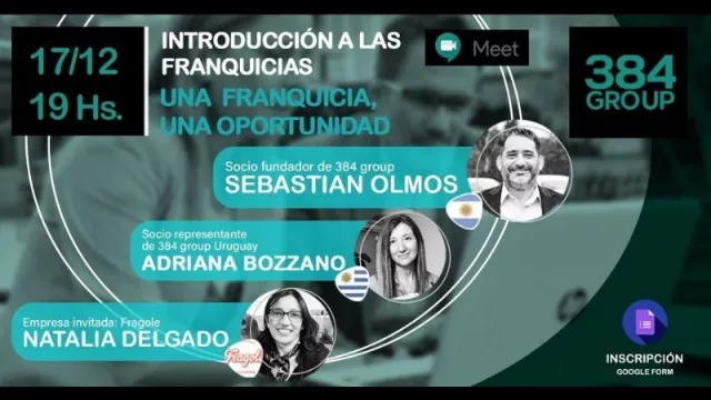 Si bien apenas comenzó a rodar en el país hace poco tiempo, mañana 384 Group Uruguay cerrará el año con un evento en el que invita a todos los interesados a participar de un meet con Bozzano, Sebastián Olmos -socio fundador de 384 Group- y Natalia Delgado -de Fragole, empresa invitada-, quienes contarán más acerca del mundo de las franquicias.