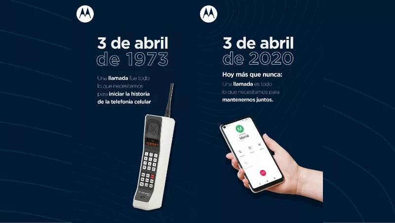A 47 años de la primera comunicación por celular, hoy vos tenés que hacer también tu llamada (mensaje de Motorola)