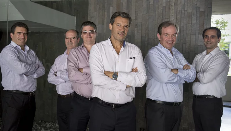 (De izquierda a derecha): Ernesto Boli, gerente Controller Financiero; Carlos Fernández, gerente Financiero Contable; Juan Carlos Martínez, gerente de Proyectos; Francisco Bello, gerente General; Fernando Lapchik, gerente Comercial y de Marketing y Ronald Jackson, gerente de IT.