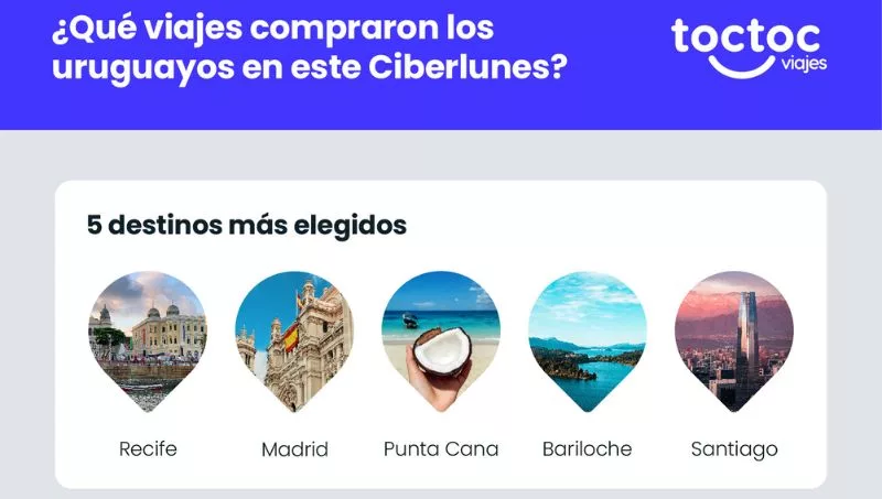 Los viajes a Brasil, Argentina y Chile lideraron las compras durante el Ciberlunes en la principal agencia de viajes online del país. Sí, una buena noticia para TocTocViajes ha sido la incipiente revitalización de los viajes regionales, que habían sido los más castigados durante la pandemia. Las opciones de playa en Rio, Recife y Salvador, así como las opciones de nieve en Bariloche y Santiago de Chile, estuvieron entre las más demandadas.