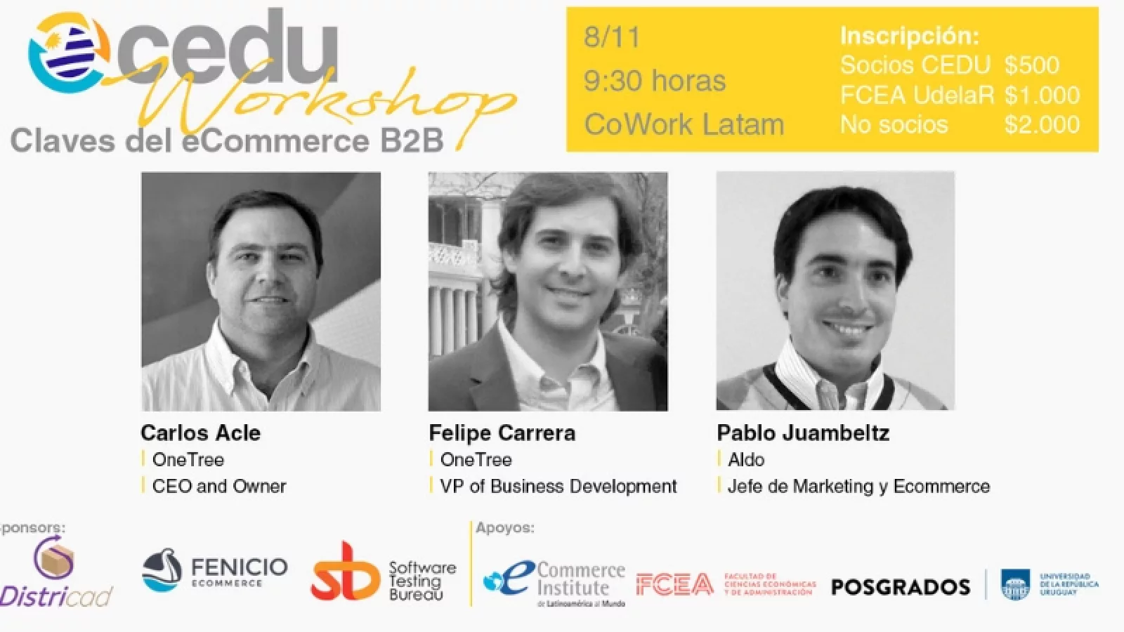 Socios CEDU $500, FCEA Udelar $1.000, No Socios $2.000