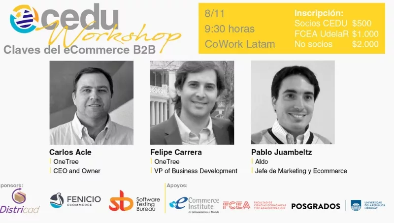 Carlos Acle (CEO and Owner de One Tree), Felipe Carrera (VP of Businnes Development de One Tree) y Pablo Juambeltz (Jefe de Marketing y Ecommerce de Aldo) serán los disertantes.