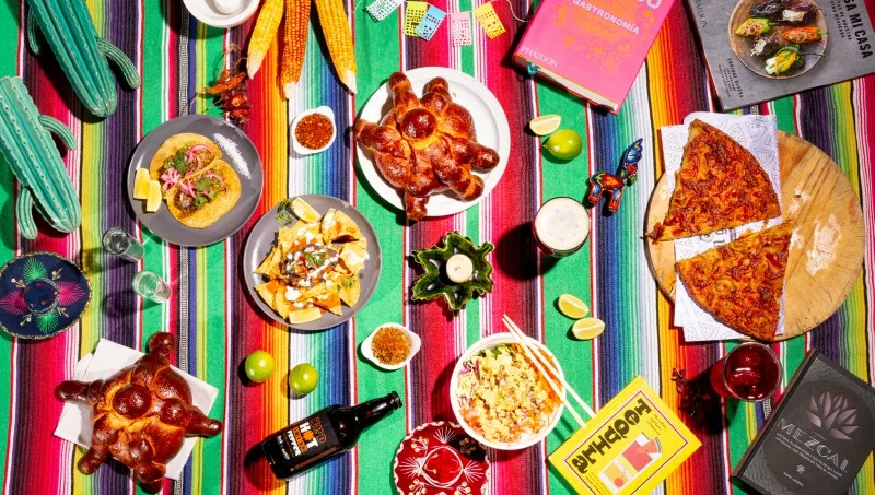 Las propuestas gastronómicas incluyen tacos de cochinita pibil y totopos con frijoles refritos por Ollas, especias mexicanas, galletas y agua de jamaica por Samud, pan de muerto por Atelier Cataleya, cerveza picante y tequilazos por OPB, poke con pico de gallo por Ola Poke, croqueta de alambre de chorizo con espuma de tortilla de maíz y mayonesa de chiplote por Vení Mañana, fainá relleno chiles picantes y salsa picante para pizzas por Il Gufo, libros de autores mexicanos por Librería Del Mercado, nachos con guacamole y quesadillas por Mundano, hamburguesa con salsa tatemada, guacamole, totopos y papas con salsa de jalapeño y cilantro por La Burguesa y objetos de bazar para cocina mexicana por Cilantro.