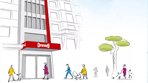 El antiguo edificio, que décadas atrás funcionaba la emblemática Tiendas Araja, fue restaurado para servir nuevamente como una tienda por departamentos. En esta nueva apuesta Divino busca recuperar el concepto de tienda por departamentos y brindar, en único edificio, todo lo que se necesita para el equipamiento del hogar.